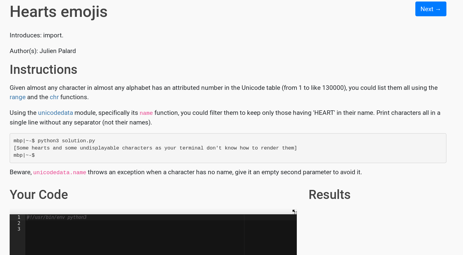 ## HackInScience Back in 2015, we started a project with the CRI of Paris Descartes: A one-week intensive Python class.